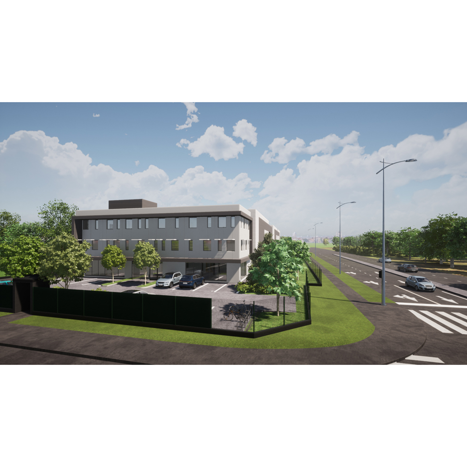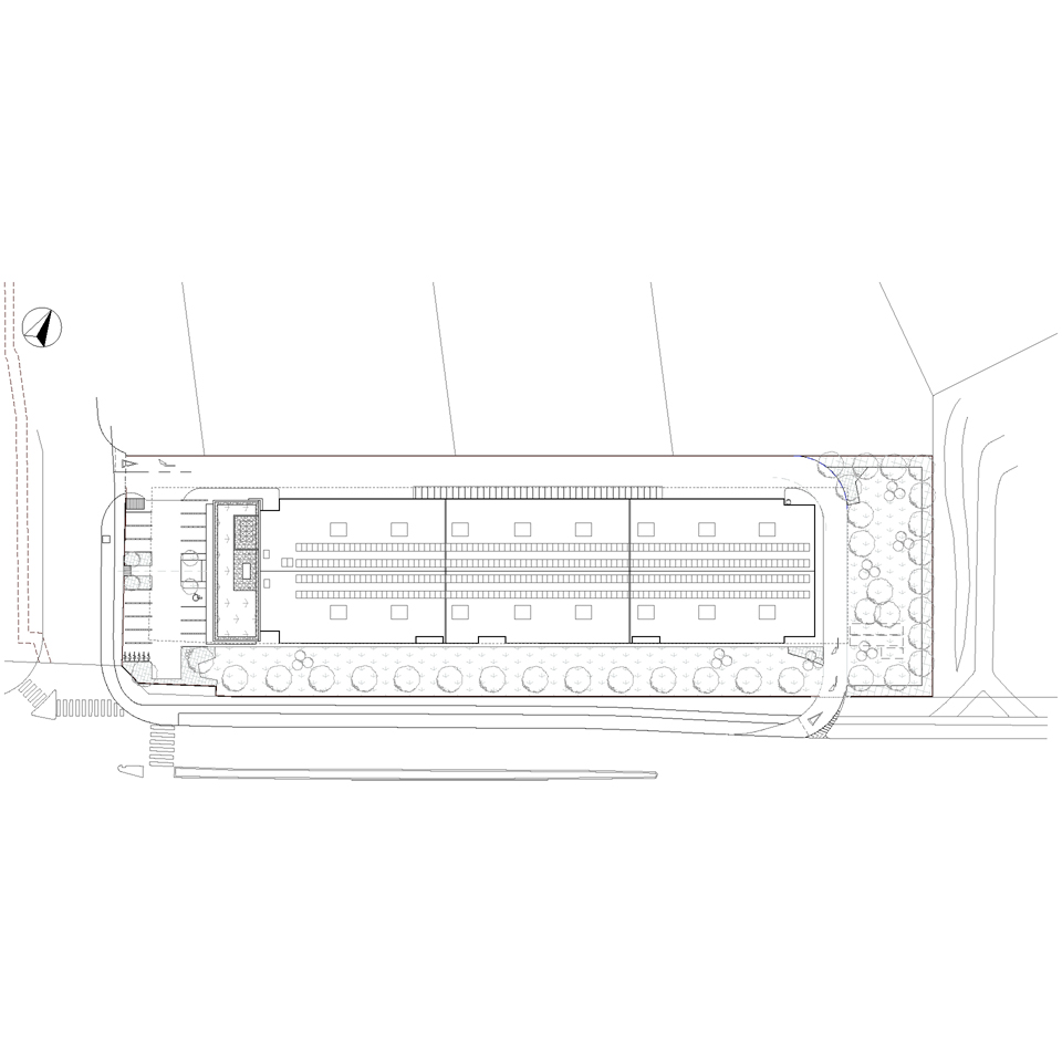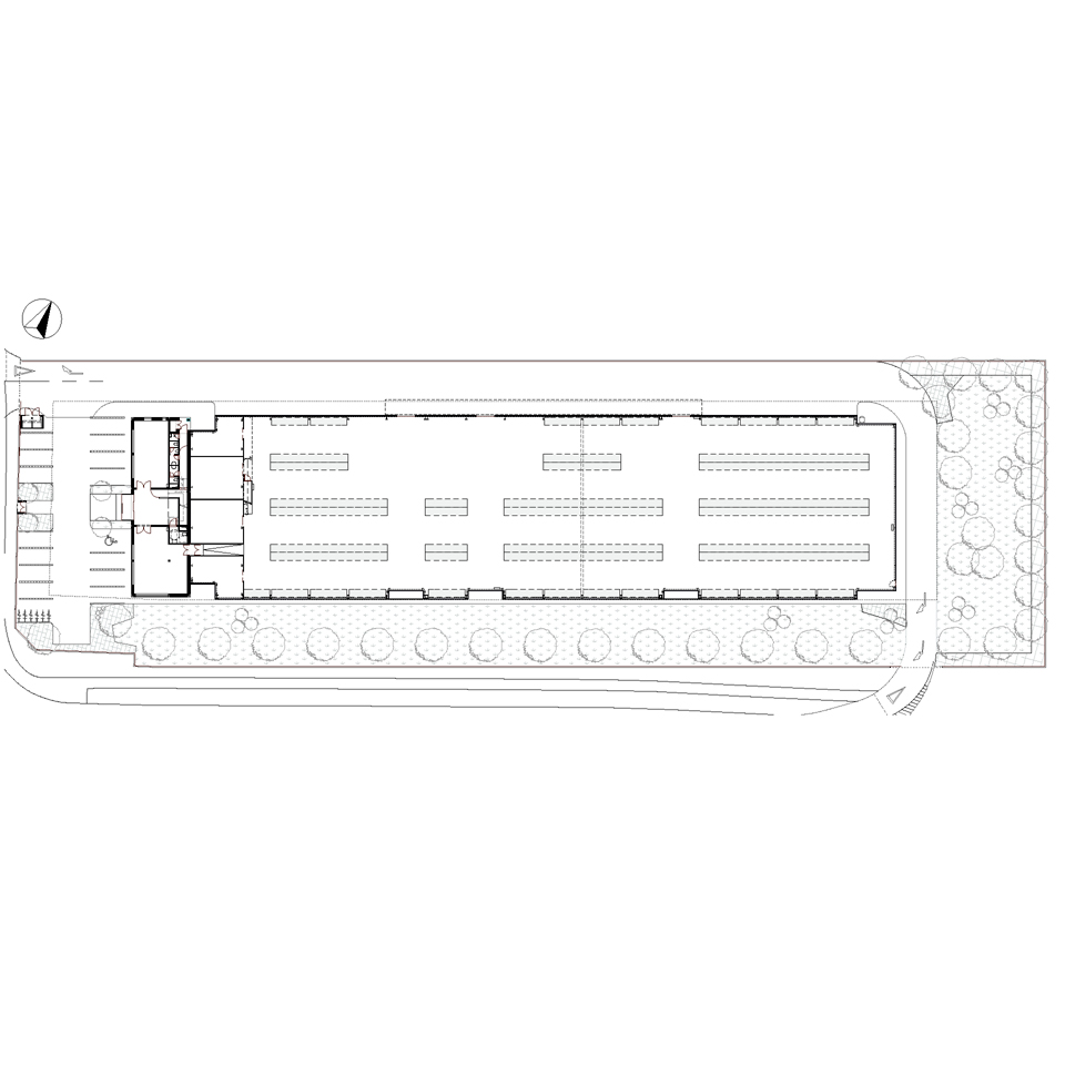 ÉLELMISZERRAKTÁRÉpítészeti tervezés Tervezés éve: 2019 Készültségi fok: Tervezés lezárult, nem épült meg Épületszintek: Földszint + 2 szint Falazat anyaga: égetett kerámia + vasbeton Telek lejtésviszonyai: sík terep Elkészített tervek: Engedélyezési terv