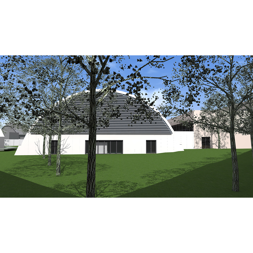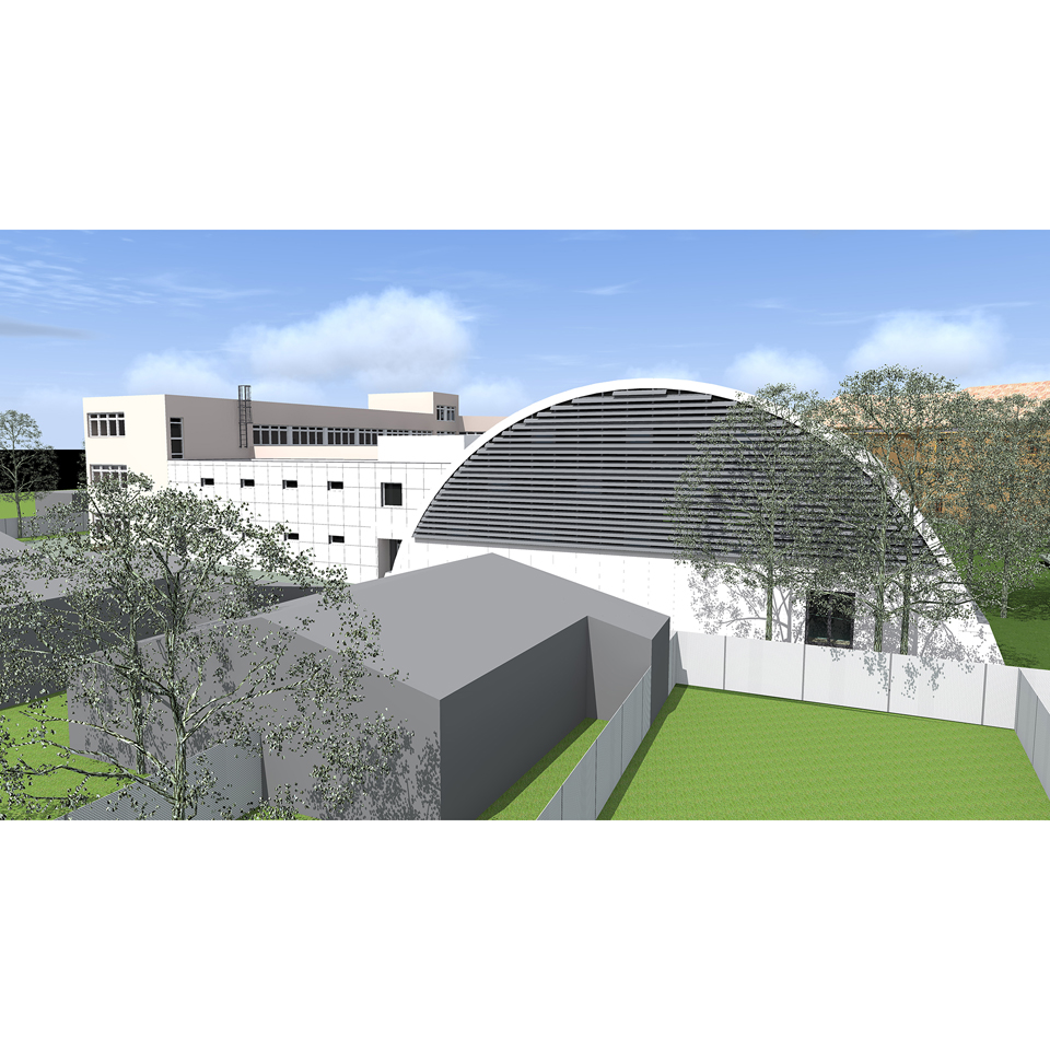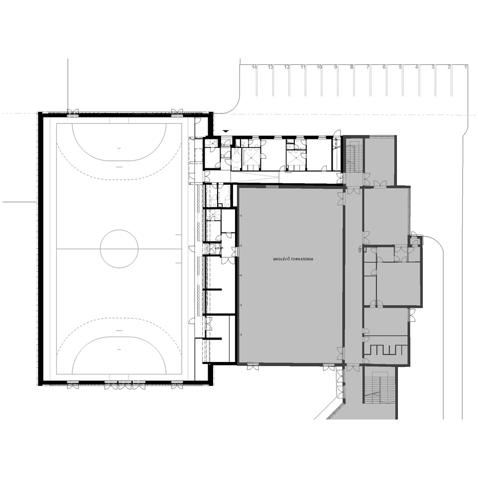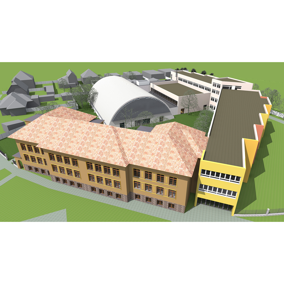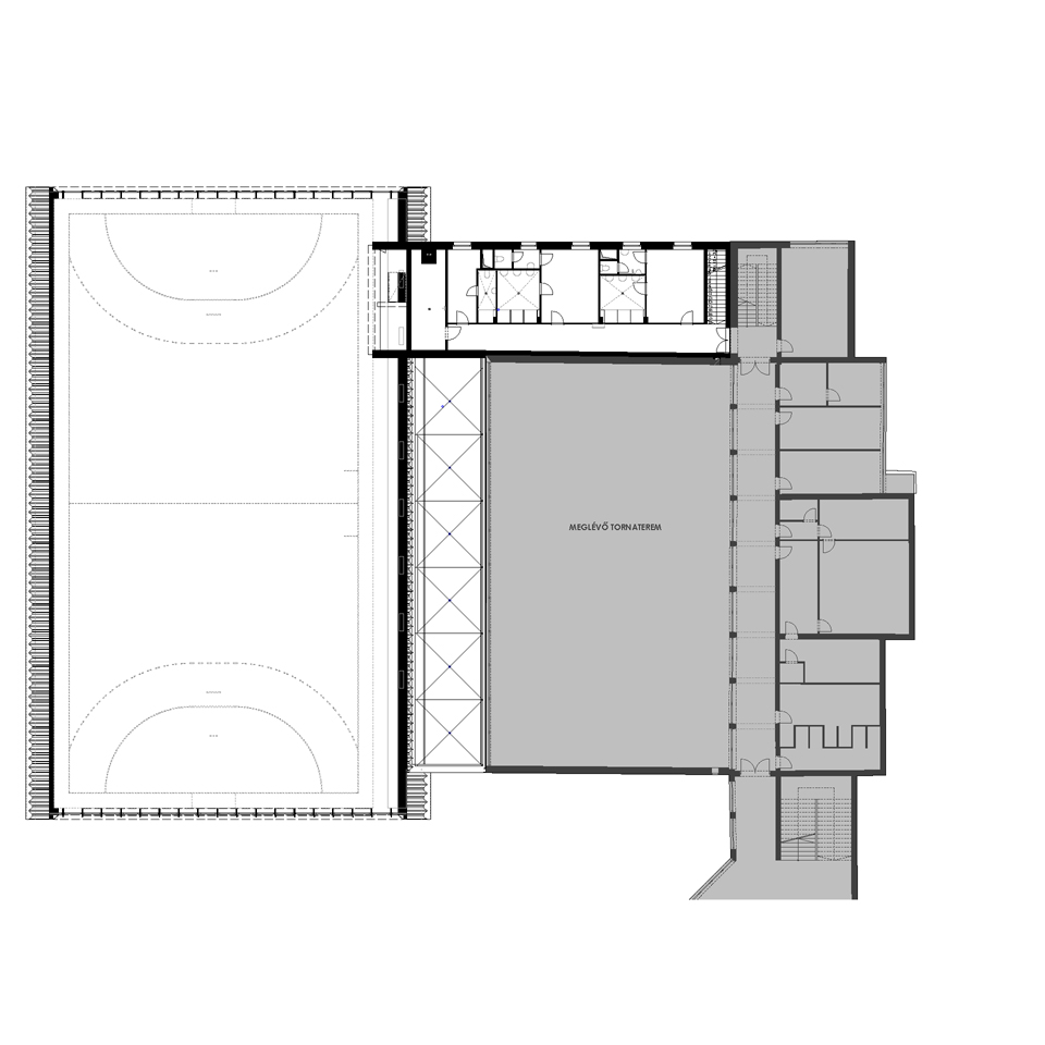 ISKOLAI SPORTCSARNOKÉpítészeti tervezés Tervezés éve: 2019 Készültségi fok: Tervezés lezárult, nem épült meg Épületszintek: Földszint + 1 szint Falazat anyaga: acél héjszerkezet + vasbeton Telek lejtésviszonyai: sík terep Elkészített tervek: Engedélyezési terv, Kiviteli terv